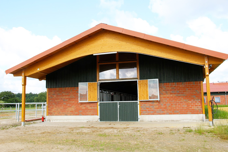 Unsere Reitanlage wurde mit Hinblick auf eine artgerechte Pferdehaltung und Komfort für Pferd und Reiter, im Jahr 2010 neu errichtet. Die lichtdurchflutete Halle hat ein Maß von 25 x 60m und ist mit den Stallgassen verbunden. Die geräumigen Boxen besitzen je zwei Fenster bzw. ein Sandpaddock (zur Gasse und nach draußen) und sind hell und luftig gestaltet. Zusätzlich wurde im Jahr 2012 noch ein Offenstall errichtet.